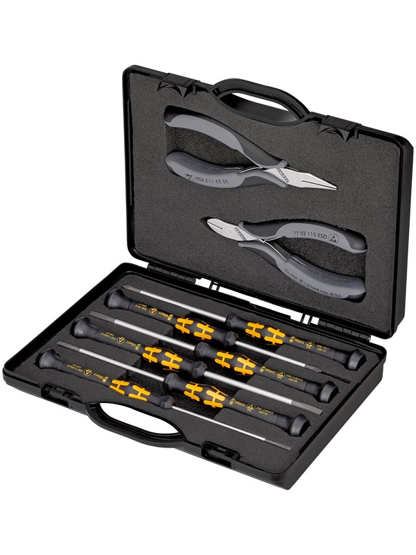KNIPEX Elektronikktang-sett, med verktøy for arbeid på elektroniske komponenter