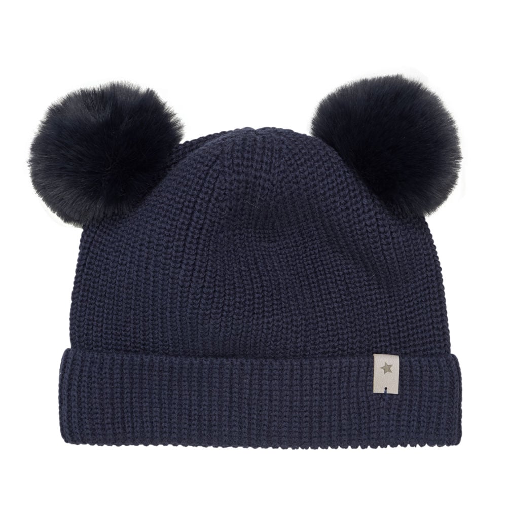HUTTEliHUT hat knit fakefur pom's cotton - navy - 4-6år