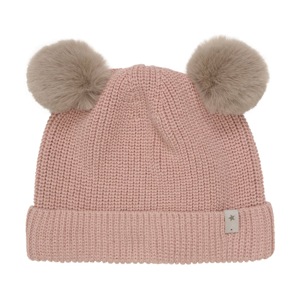 HUTTEliHUT hat knit fakefur pom’s cotton – mahogany rose - 1-2år