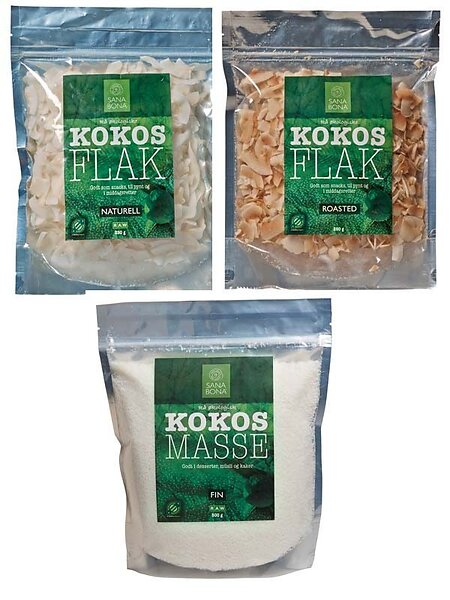 Sana Bona Kokosflak og kokosmasse økologisk 3 pack