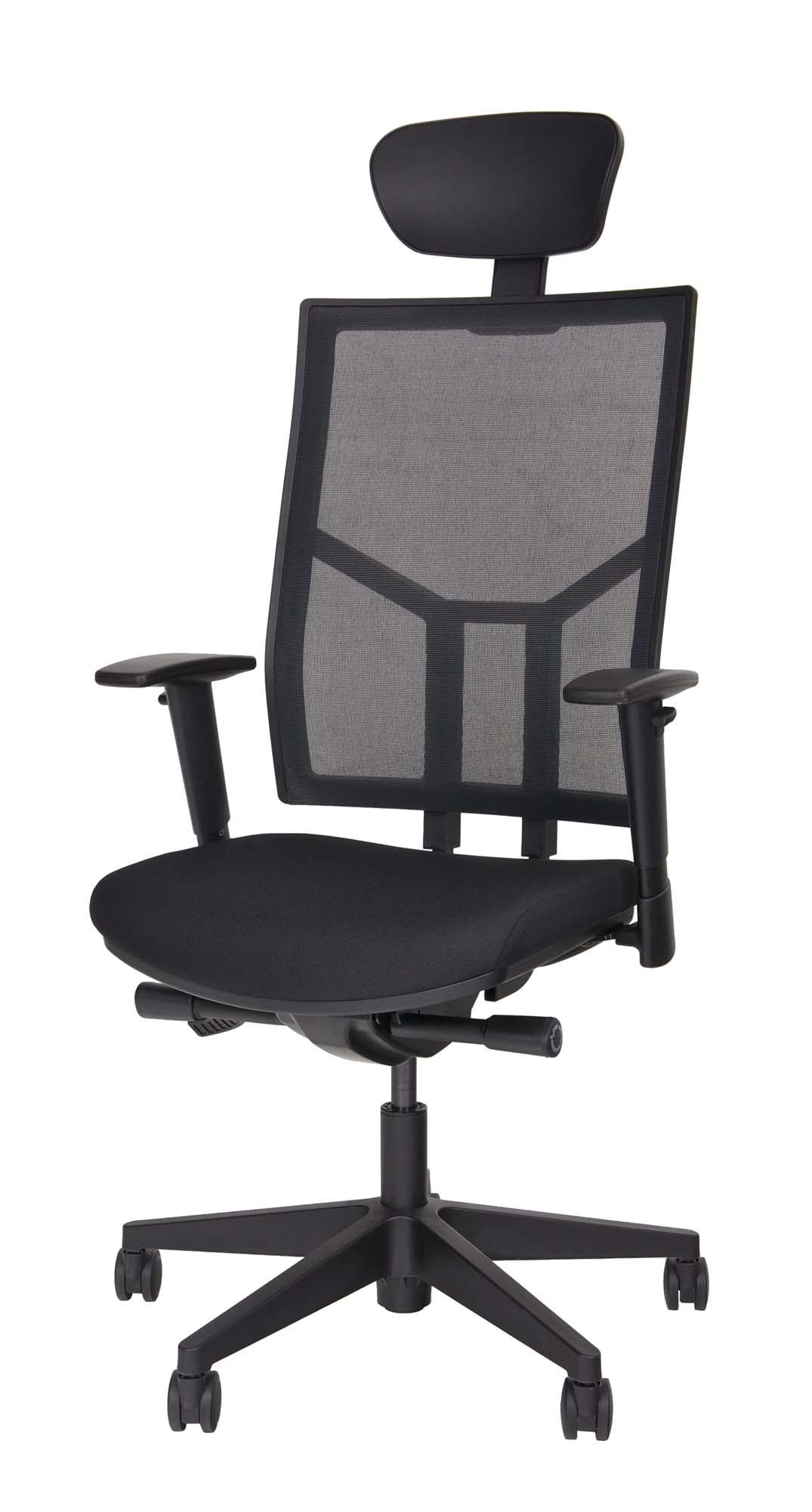 Beltton Kontorstol Gunilla - Svart Nakkestøtte i lær. Justerbar korsryggstøtte Kryss: