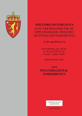 Politiregisterloven - (lov om behandling av opplysninger i politiet og påtalemyndigheten) av 28. mai 2010 nr. 16 : med endringer, sist ved lovov av 20. juni 2025 nr. 96 (i kraft 1. januar 2026) : samt forskrift
