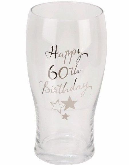 60-års Feiring - Glass Krus / Pint med Gravert Tekst og Stjerner