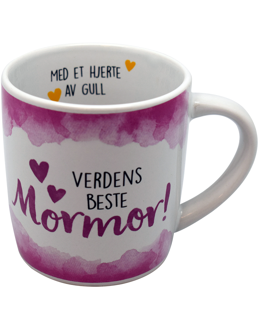 Verdens Beste Mormor - Hvitt og Rosa Krus med Tekst