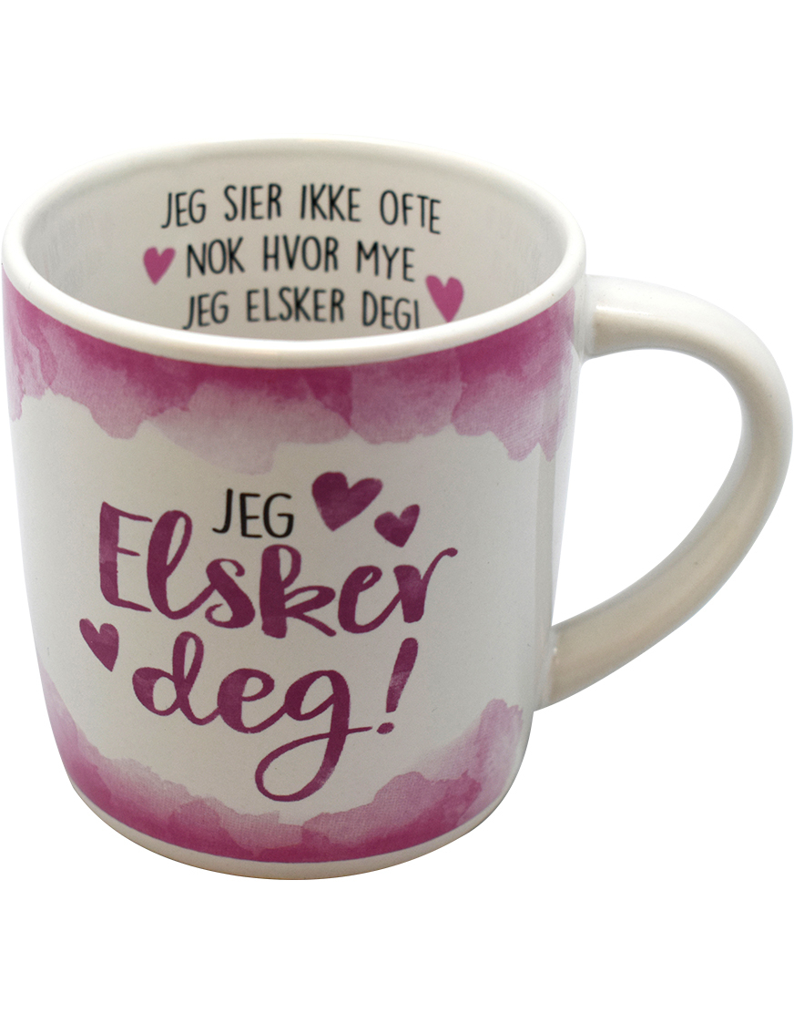 Jeg Elsker Deg - Hvitt og Rosa Krus med Tekst