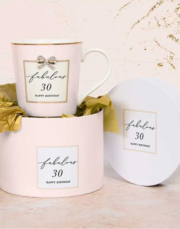 Happy Birthday 30 - Rosa Krus med Tekst og Gulldetaljer