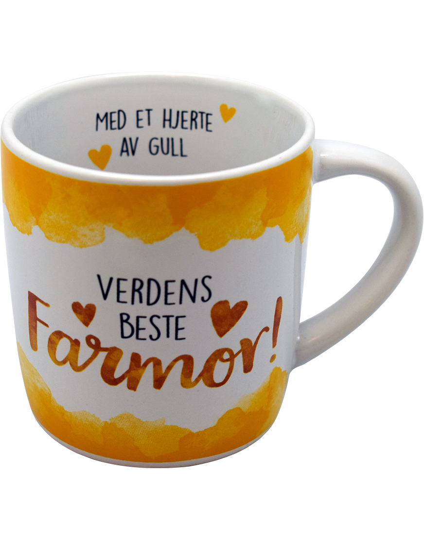 Verdens Beste Farmor - Hvitt og Gult Krus med Tekst