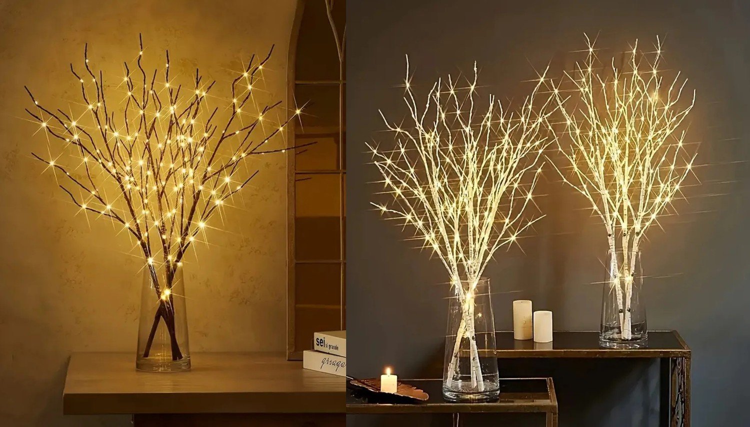 Kunstig bjørkekvist med LED-lys