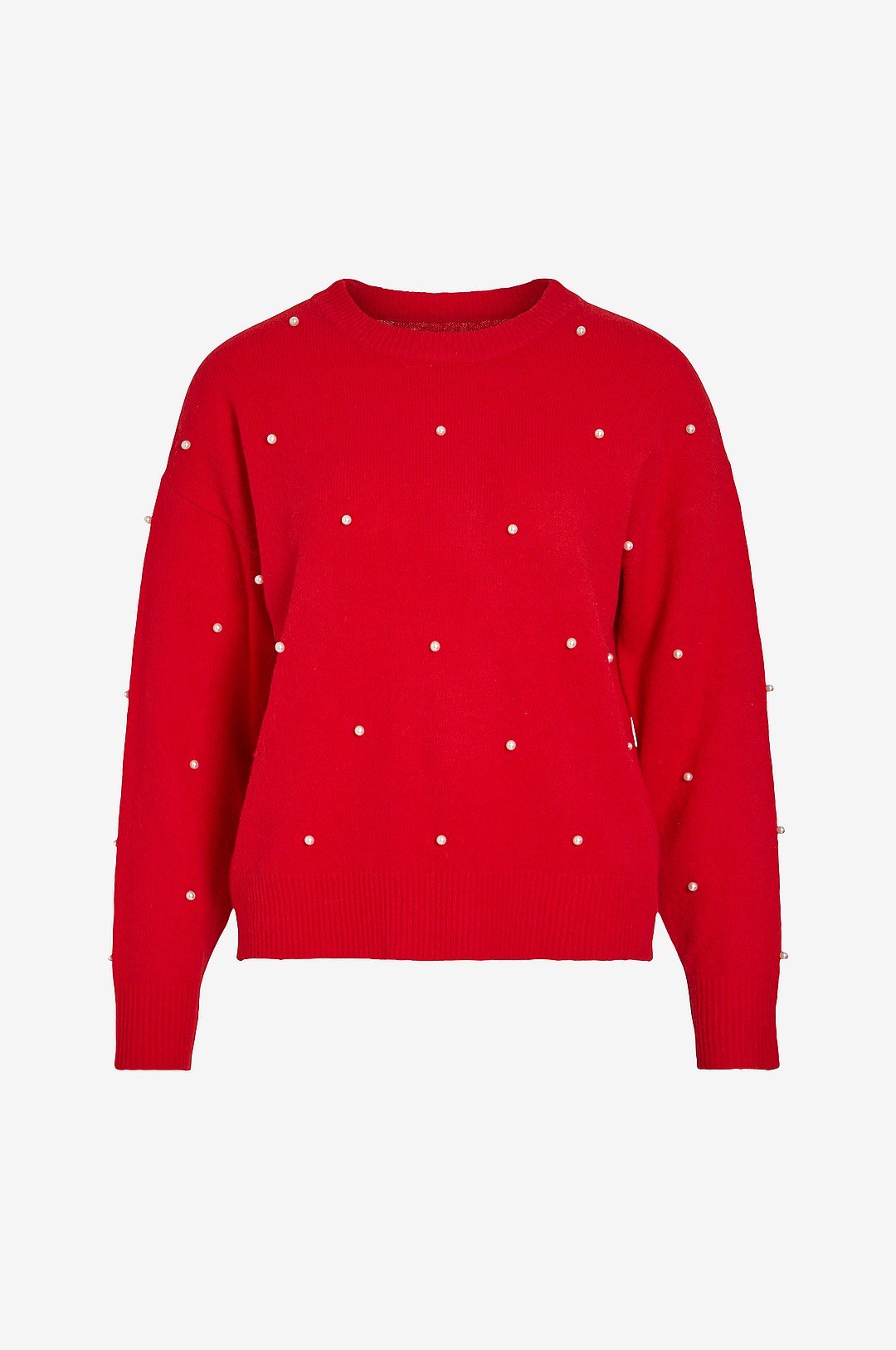 Vila - Genser viSpark L/S Knit Pearl Pullover - Rød