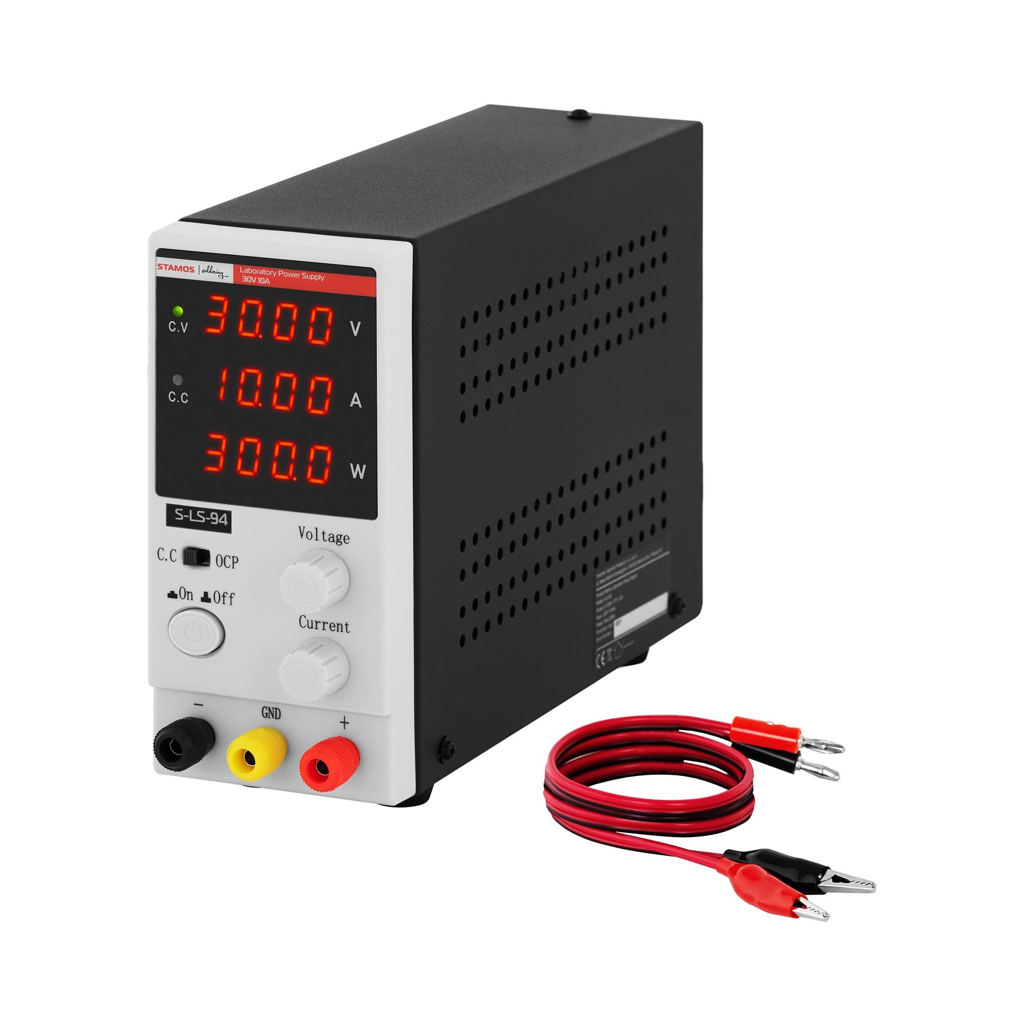 Stamos Soldering Strømforsyning laboratorie - 0 30 V 10 A DC 300 W 4-sifret LED skjerm USB