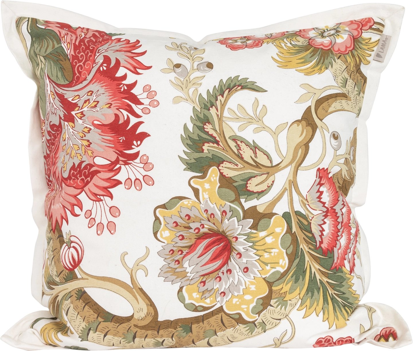 Lama putetrekk hvit med blomster 50x50 Rust