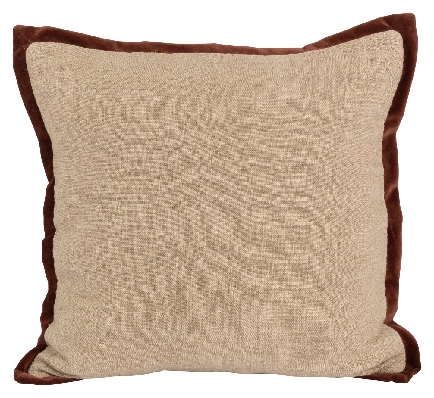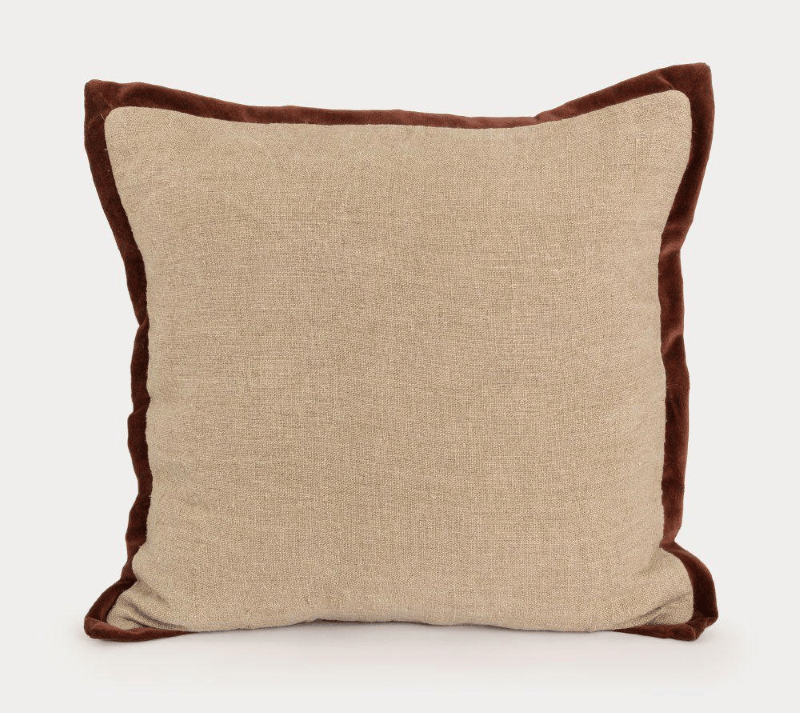 Lama putetrekk med fløyelkant i lin 50x50 Linfarget med marone