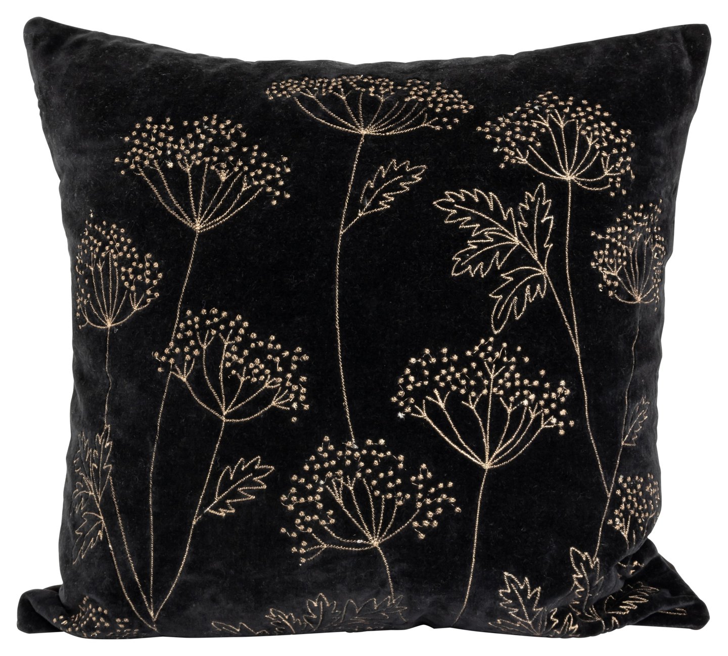 Lama Putetrekk fløyel svart med gull broderi 50x50