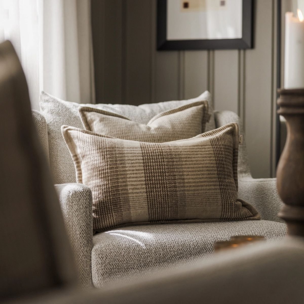 Lama Putetrekk Ull Beige-Rutet 40x60cm