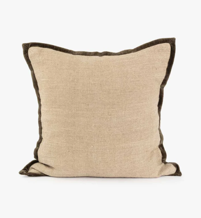 Lama Putetrekk Lin med fløyelskant Mose 50x50cm