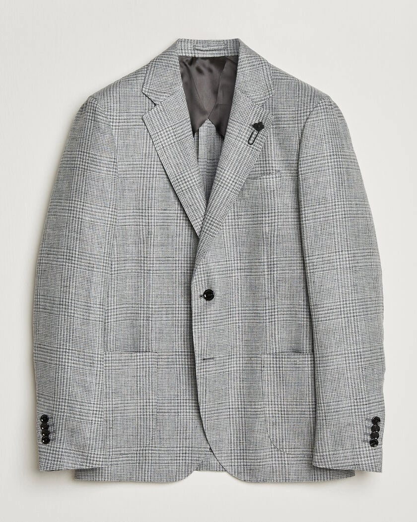 Lardini Checked Linen/Wool Blazer Grey