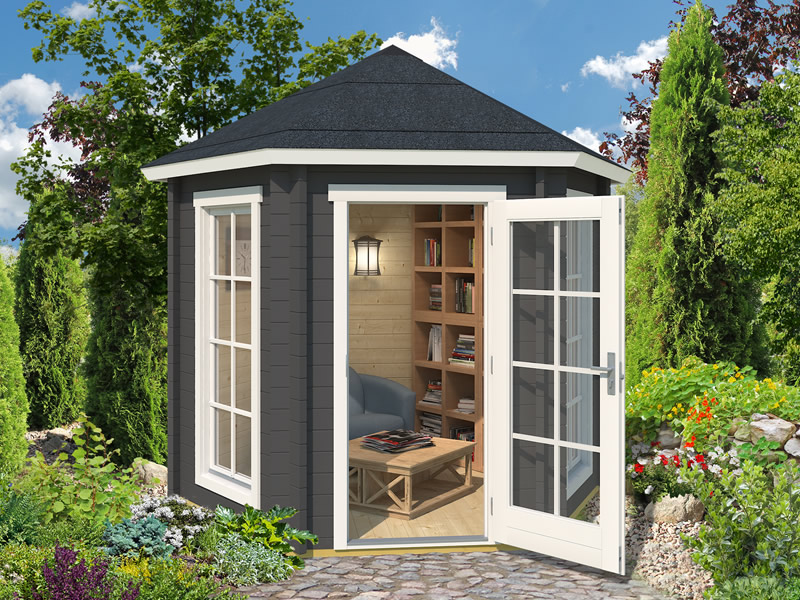 Paviljong i tre Lausanne, sekskantet 2,8x2,42x2,89m, 44mm, Mørkegrå