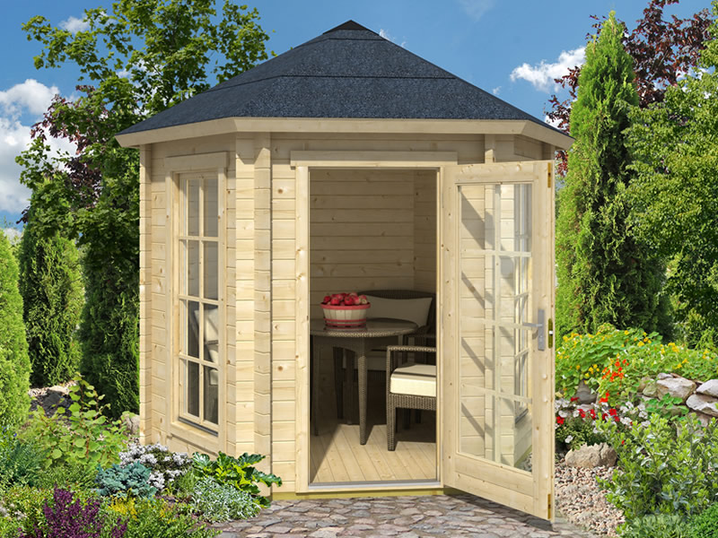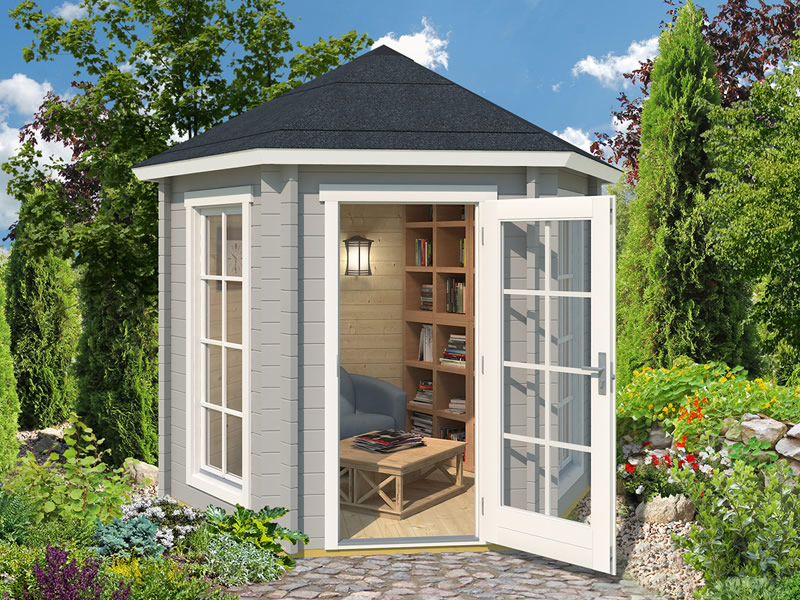 Paviljong i tre Lausanne, sekskantet 2,8x2,42x2,89m, 44mm, Lysegrå