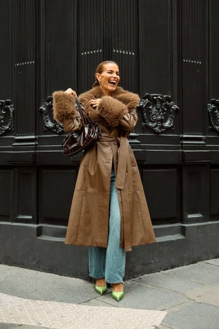 Mango Leather-Effect Trench Coat (Dam)
