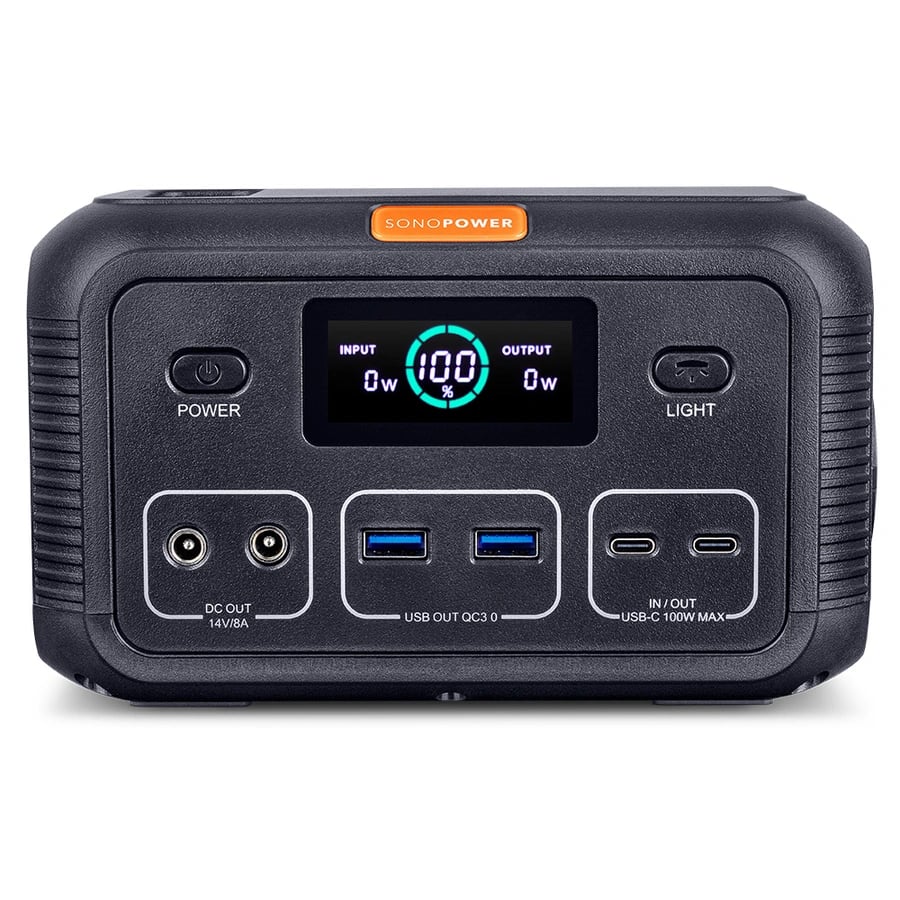 Sonopower MPS-100 bærbar strømforsyning 100W, USB/USB-C, 230VAC, 14V DC, Led-lys