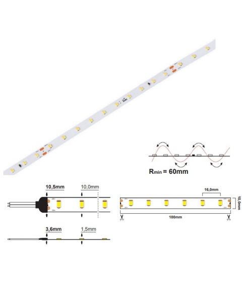 Lit Led Strip 24V 9,6W 830Lm 3000K Ra90 Ip20 10M - 50.000Timer - 5Cm Cut - Standard