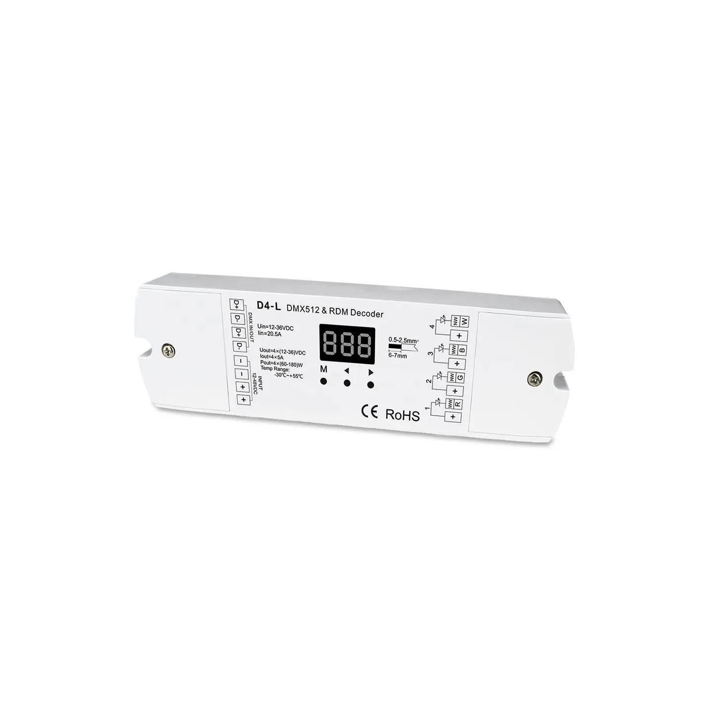 SBL LED driver for RGBW strip, DMX Maks 5A, 4 kanaler. 12-24VDC inn