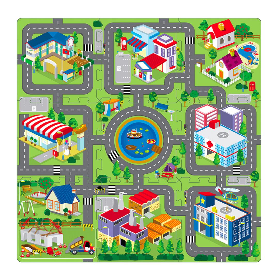 Leketeppe med by og veinett til lekebiler - 100 x 190 cm
