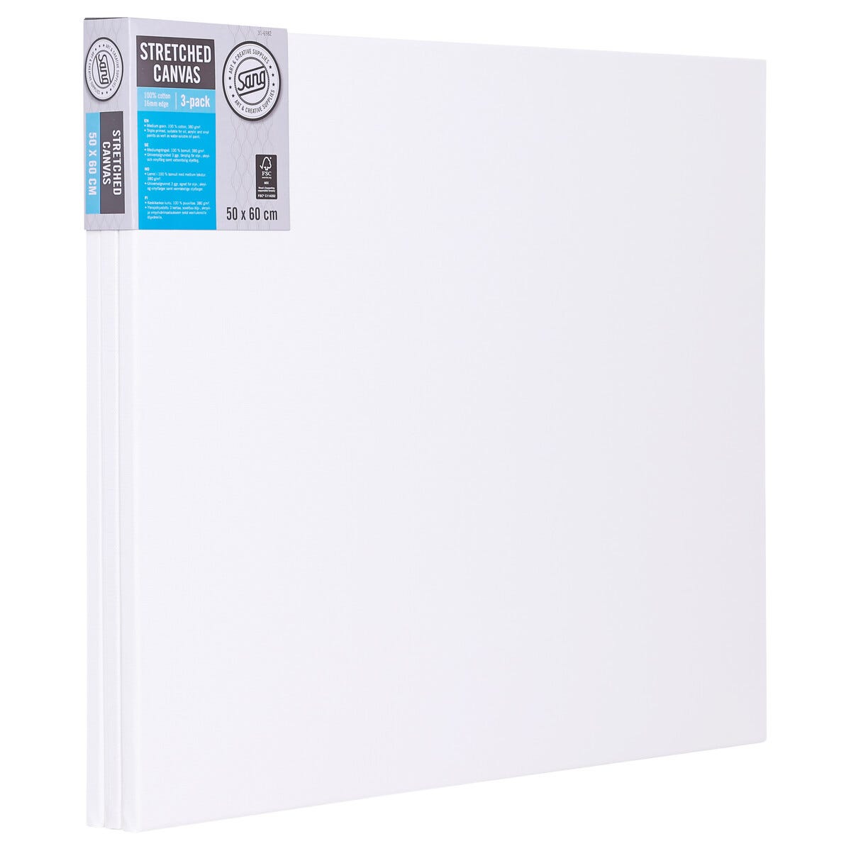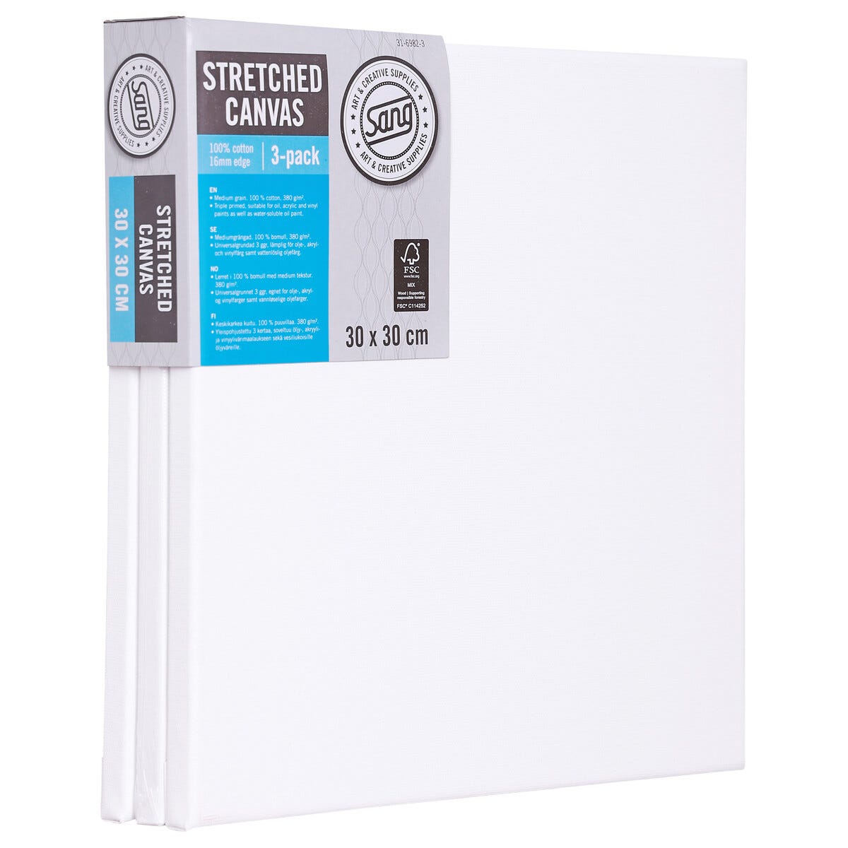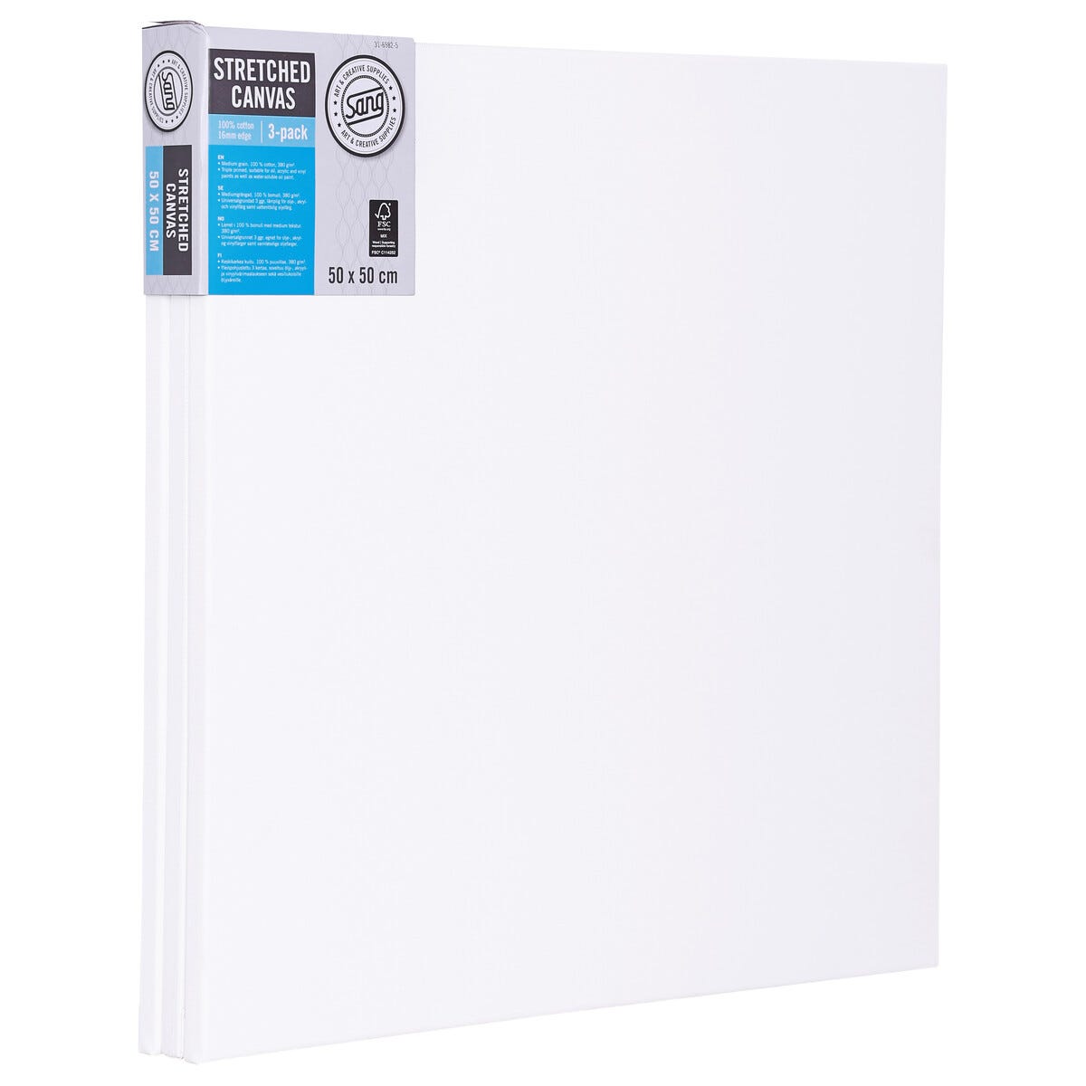 Kvadratisk lerret med ramme, bomull, Sang, 3-pakning