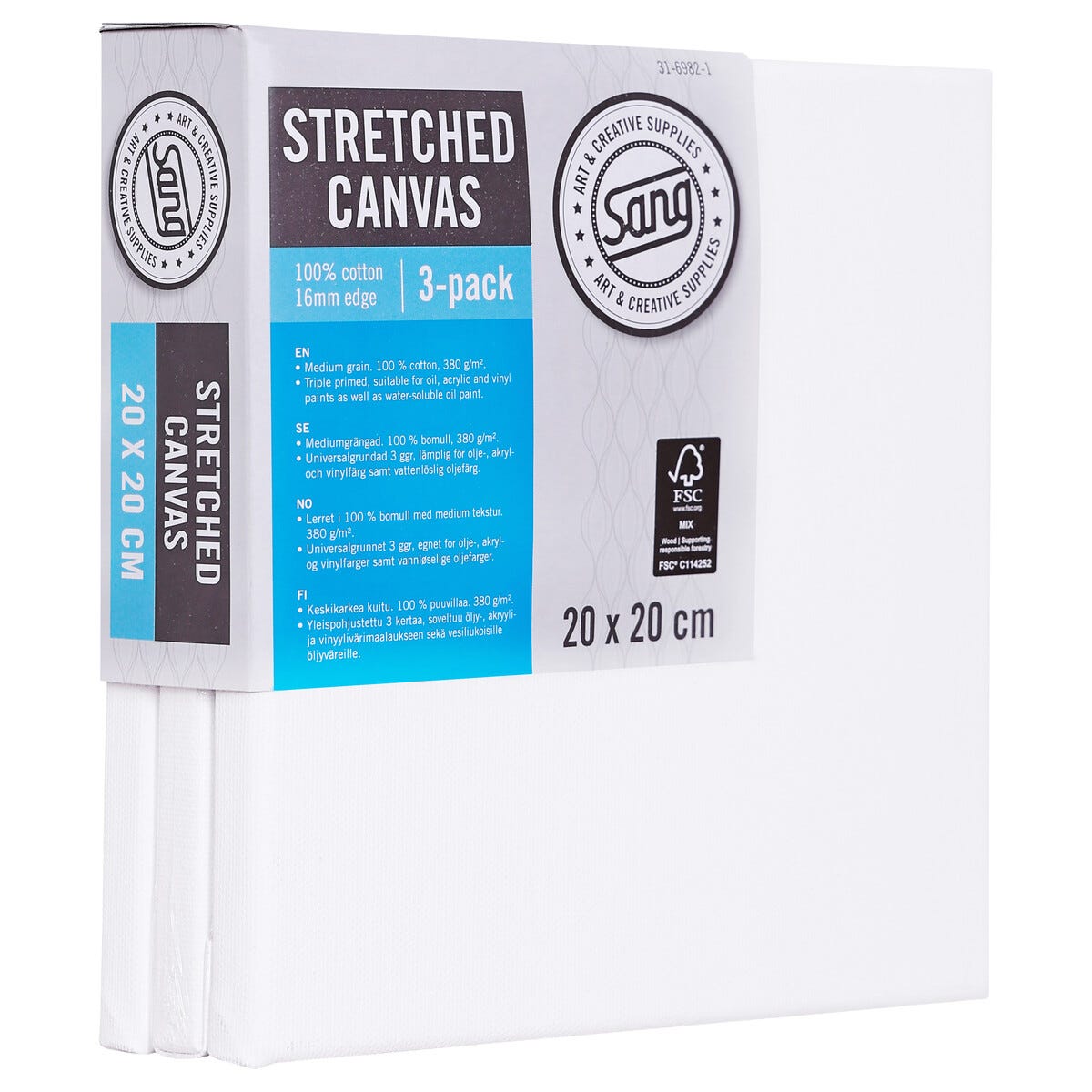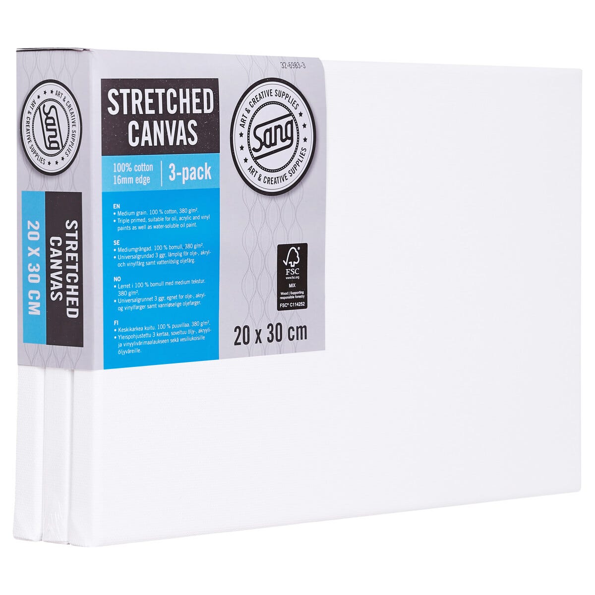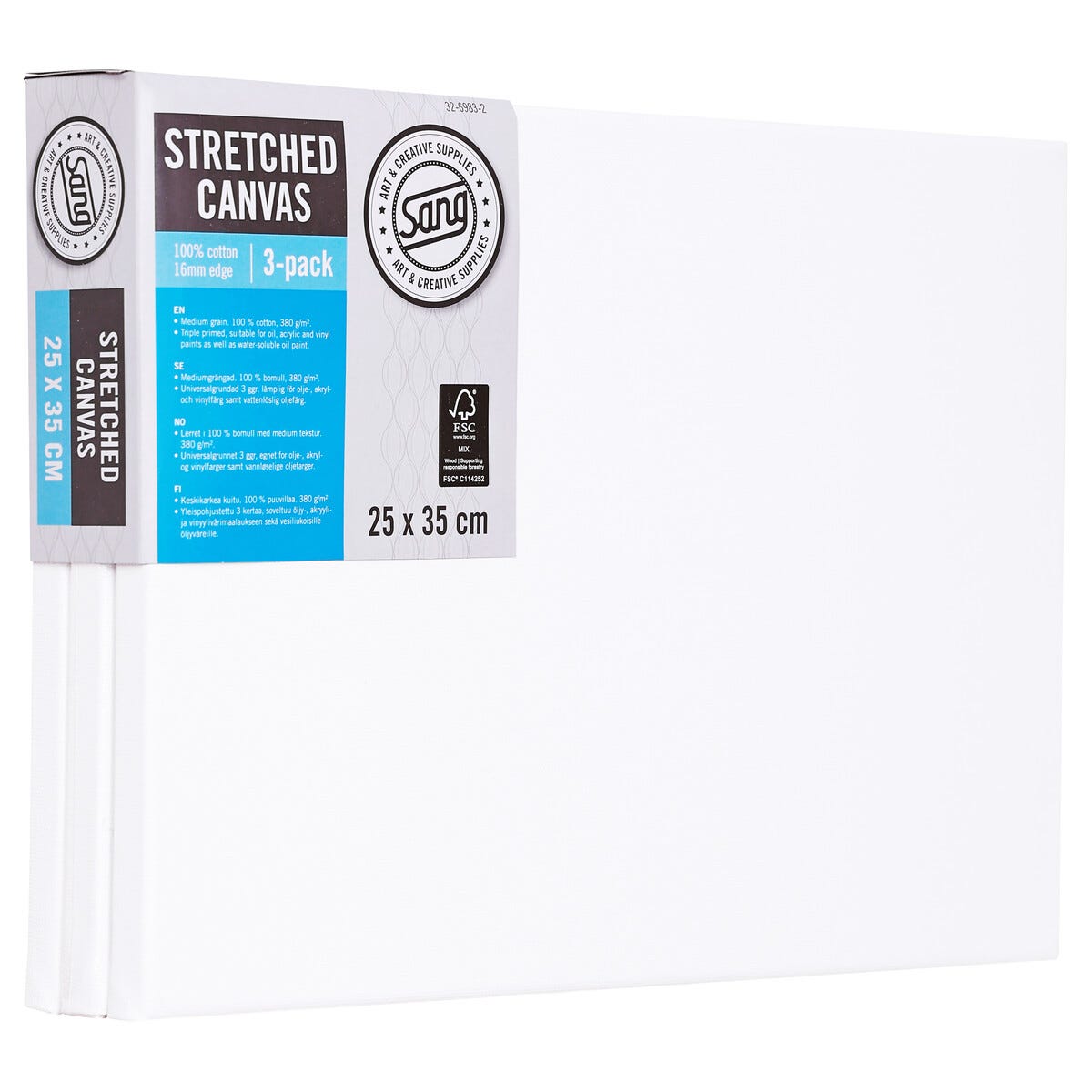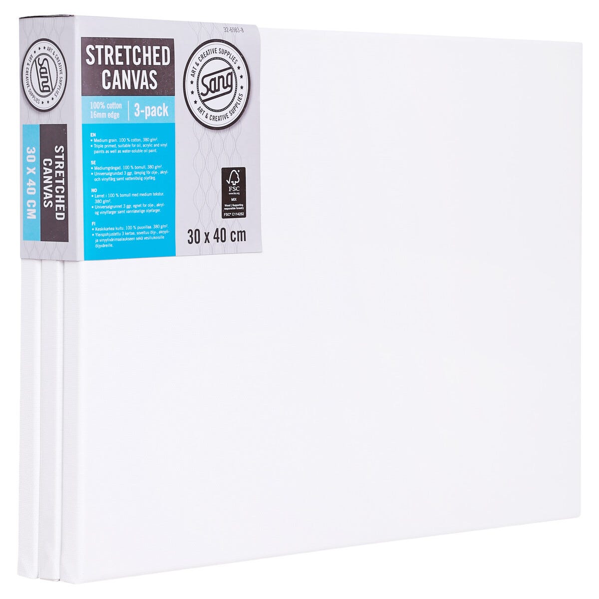 Kvadratisk lerret med ramme, bomull, Sang, 3-pakning
