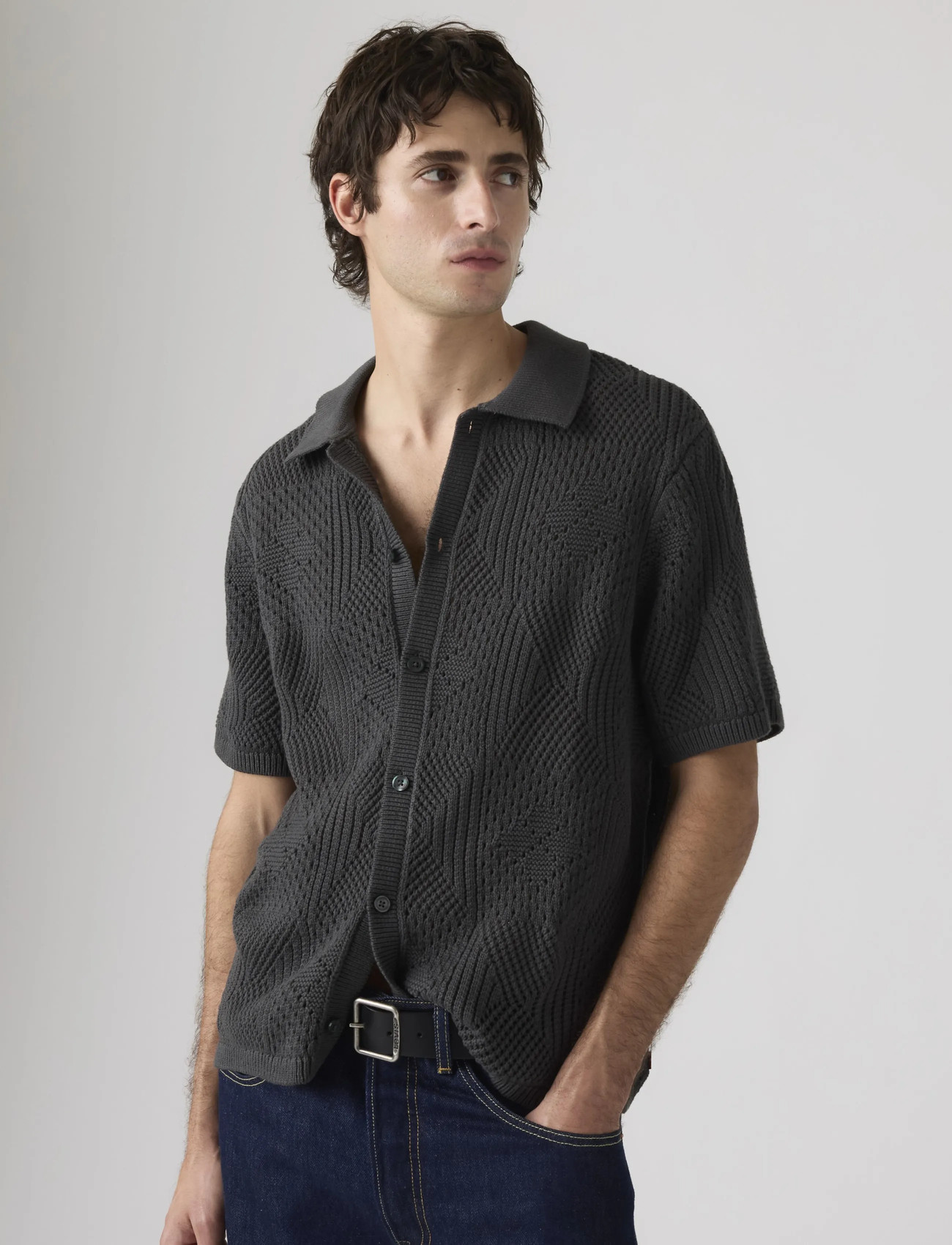 Levi's® Sweater Camp Shirt Pointelle C - Black - L