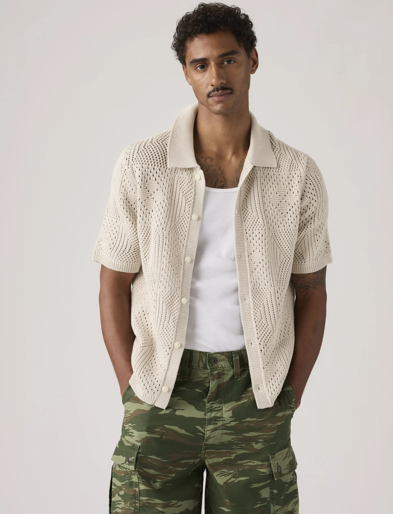 Levi's® Sweater Camp Shirt Pointelle C - Cream - XL