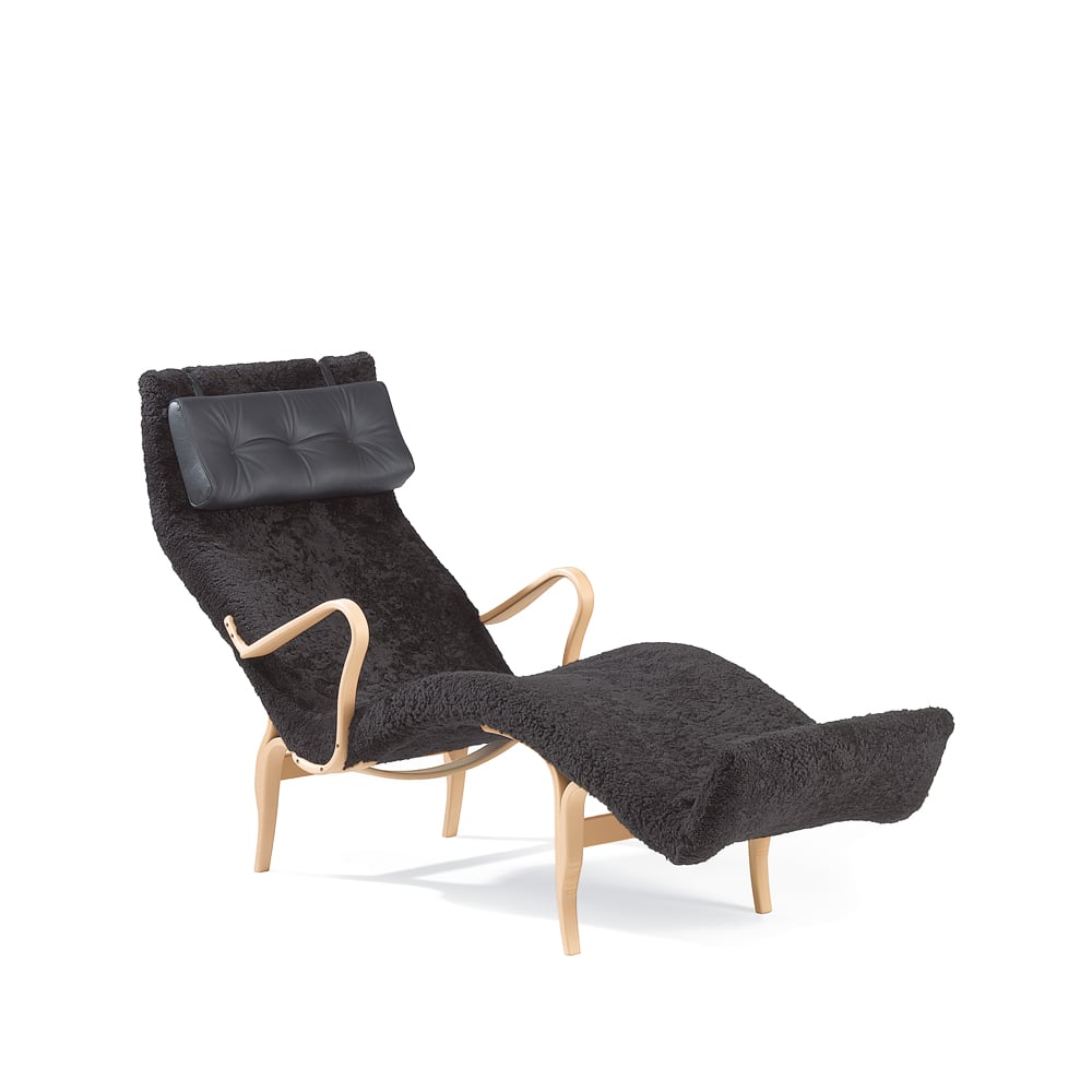 Bruno Mathsson International Pernilla 3 liggestol Fåreskinn svart-svart skinnpute