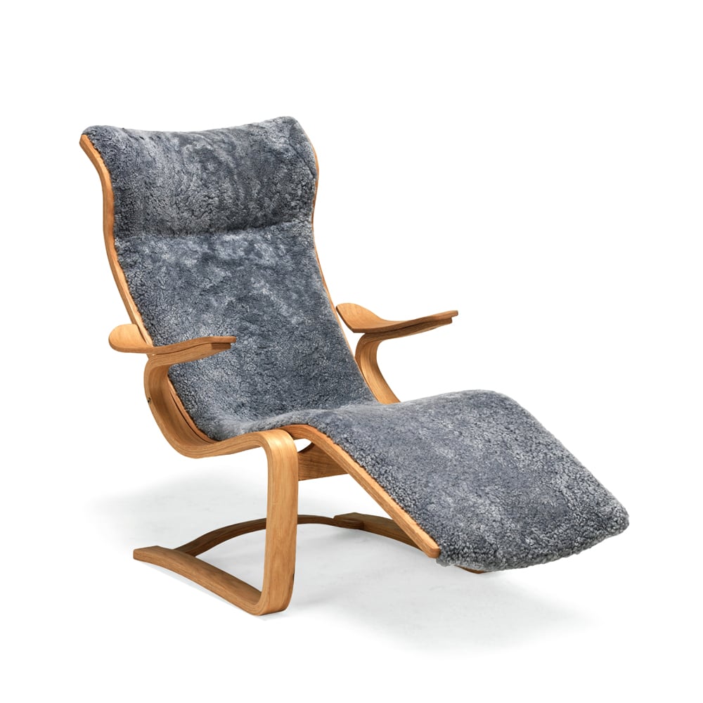 Bruno Mathsson International Mi 36 liggestol Fåreskinn grå-svart skinnpute