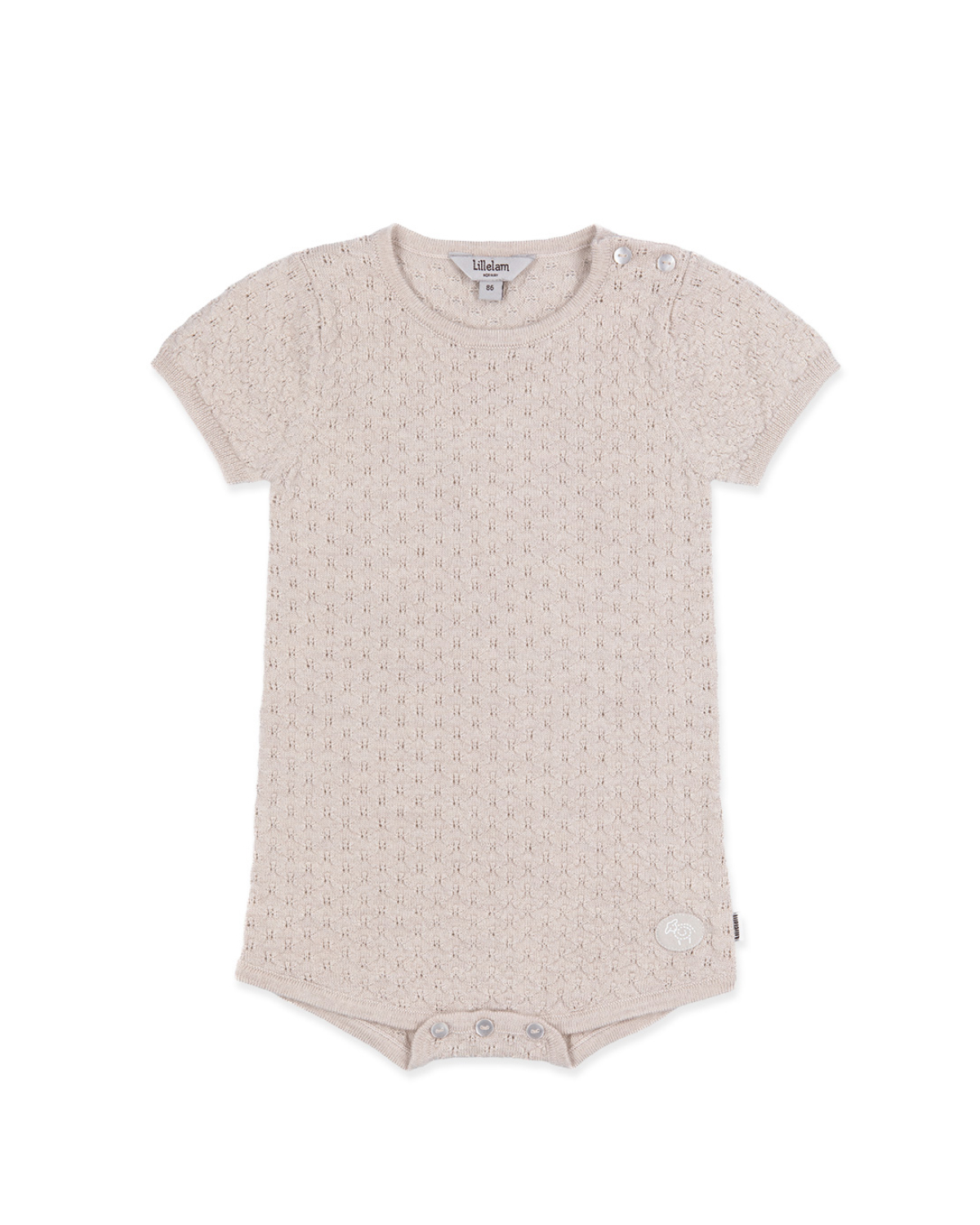 Lillelam Romper m/kort erm - Pointelle | 100% Merino - Lys Beige