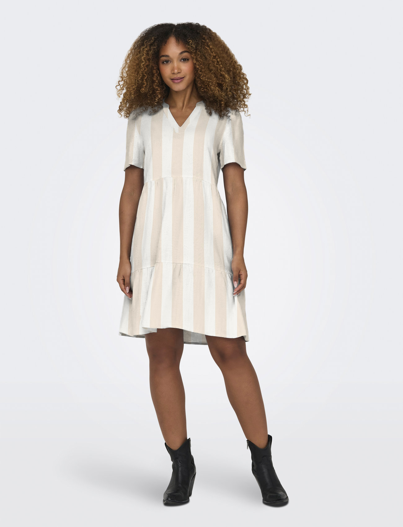 ONLY Onltiri-Caro S/S V-Neck Lin Dress Cc Pnt - Beige - S