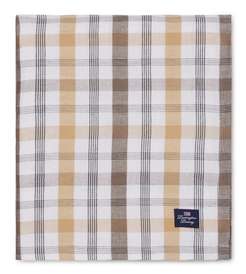 Lexington - Rutete lin/bomulls duk 150x250 cm oliven/hvit/beige
