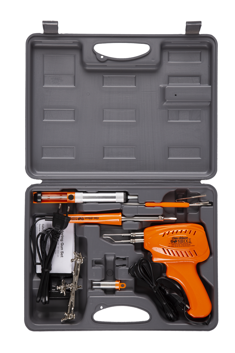 Loddepenn og loddepistol med tilbehør