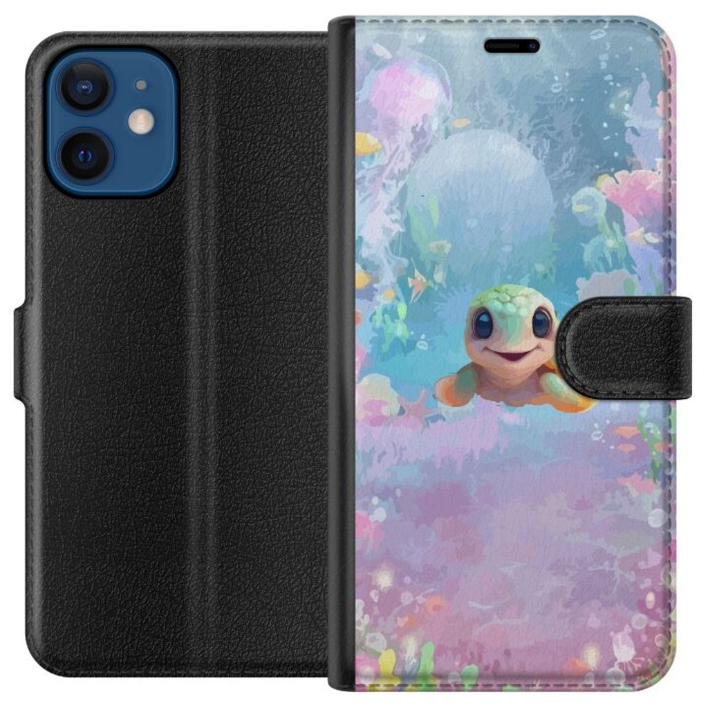 Apple iPhone 12 Sort Lommebokdeksel Glad Sköldpadda