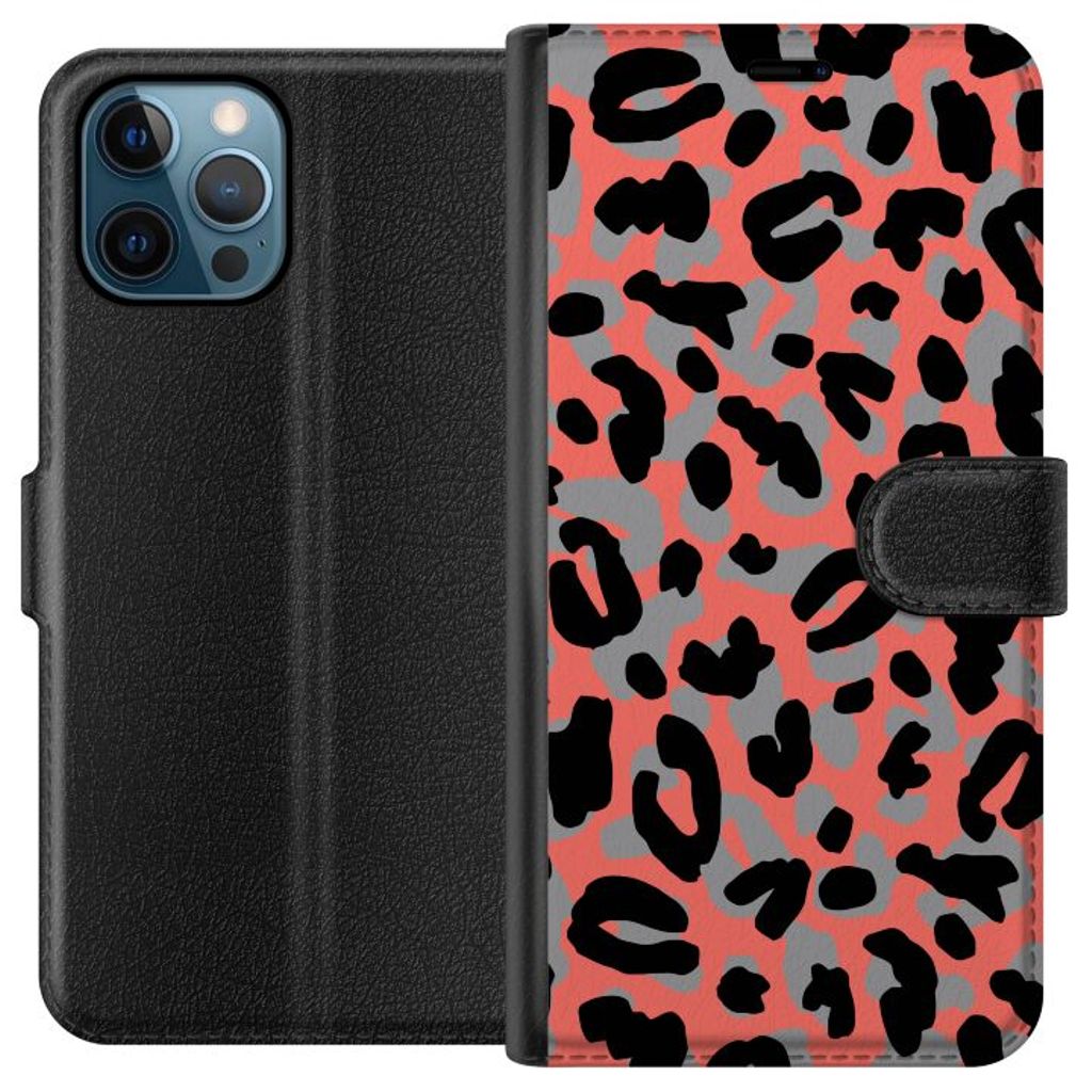 Apple iPhone 12 Pro Sort Lommebokdeksel Leopardskrud