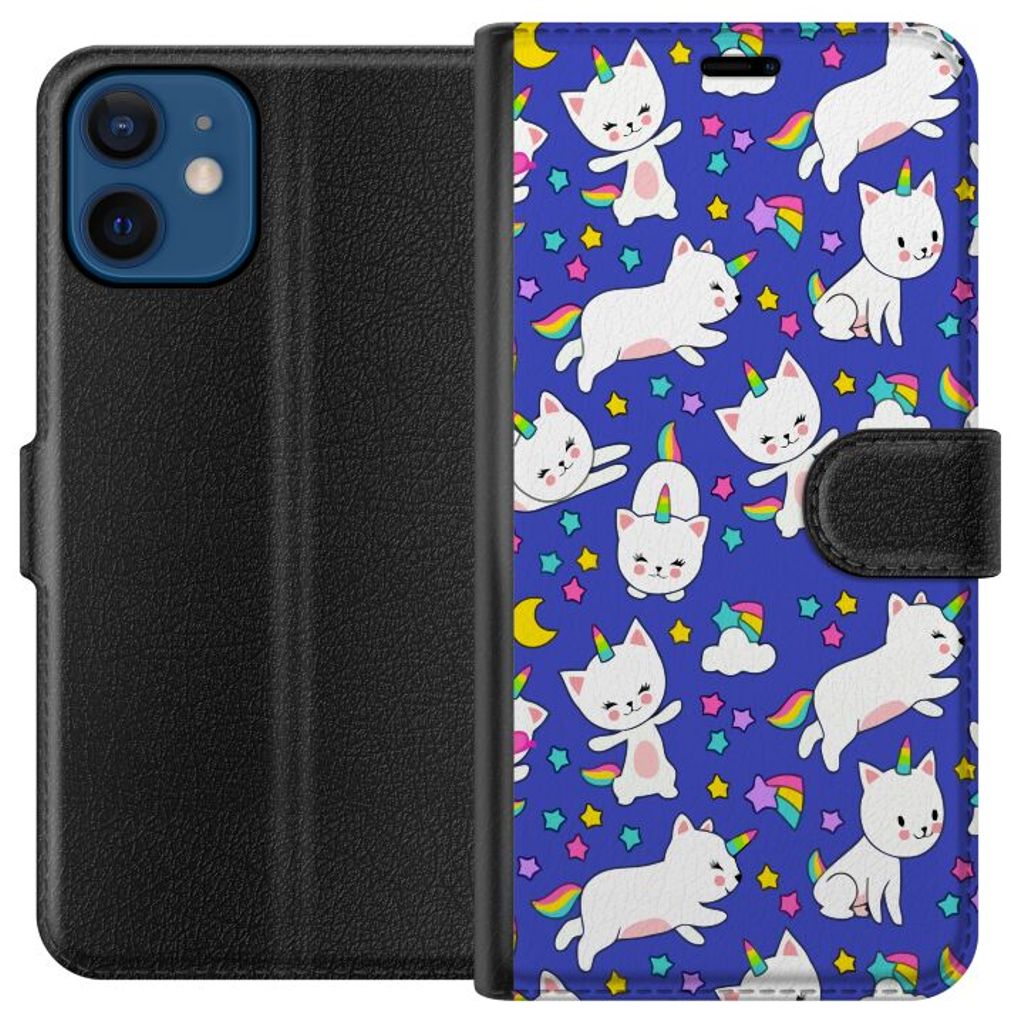 Apple iPhone 12 mini Sort Lommebokdeksel Katt Enhörning