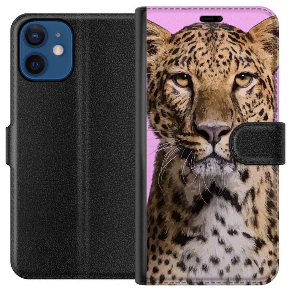 Apple iPhone 12 Sort Lommebokdeksel Leopard