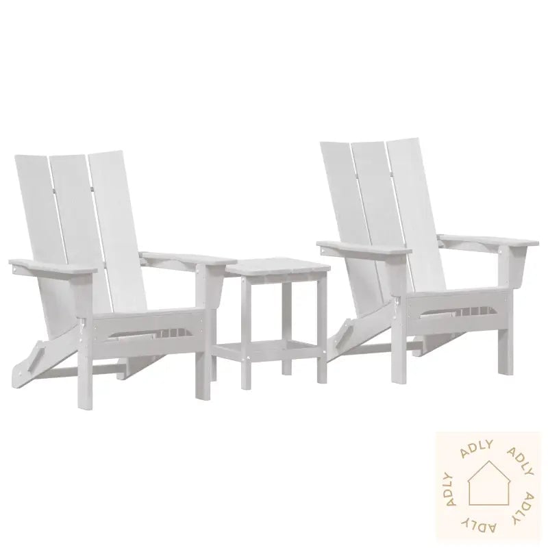 Hage lounge sett med Adirondack-stoler og bord i klassisk hvit