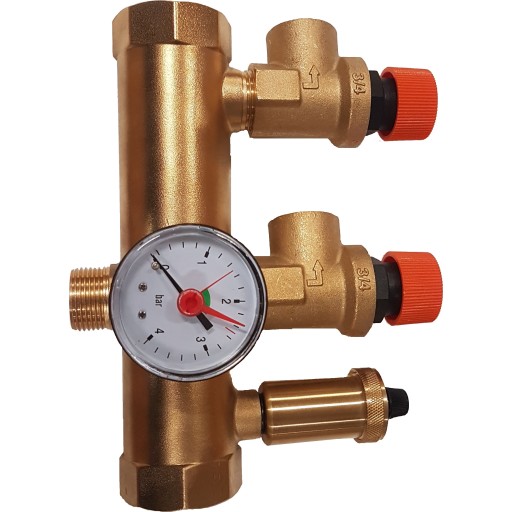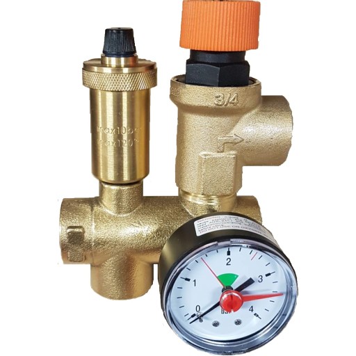 3/4" monteringssett med 2,5 bar sikkerhetsventil, mano og lufteventil