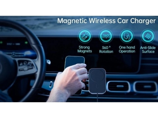 Trådløs lader m luftventil klips - SVART Hurtiglading for Apple og Android