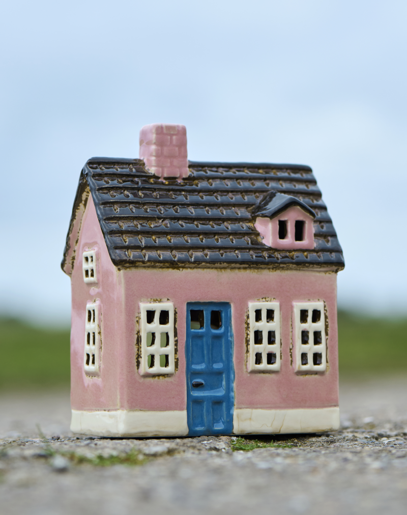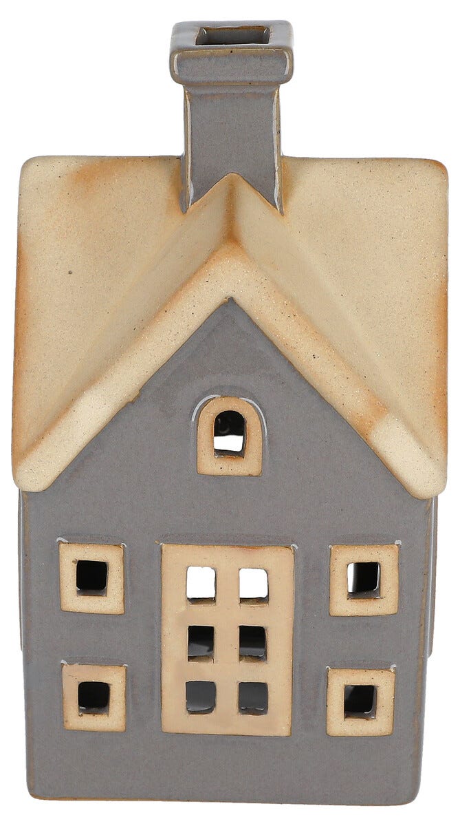 Lyshus i keramikk for telys, grått