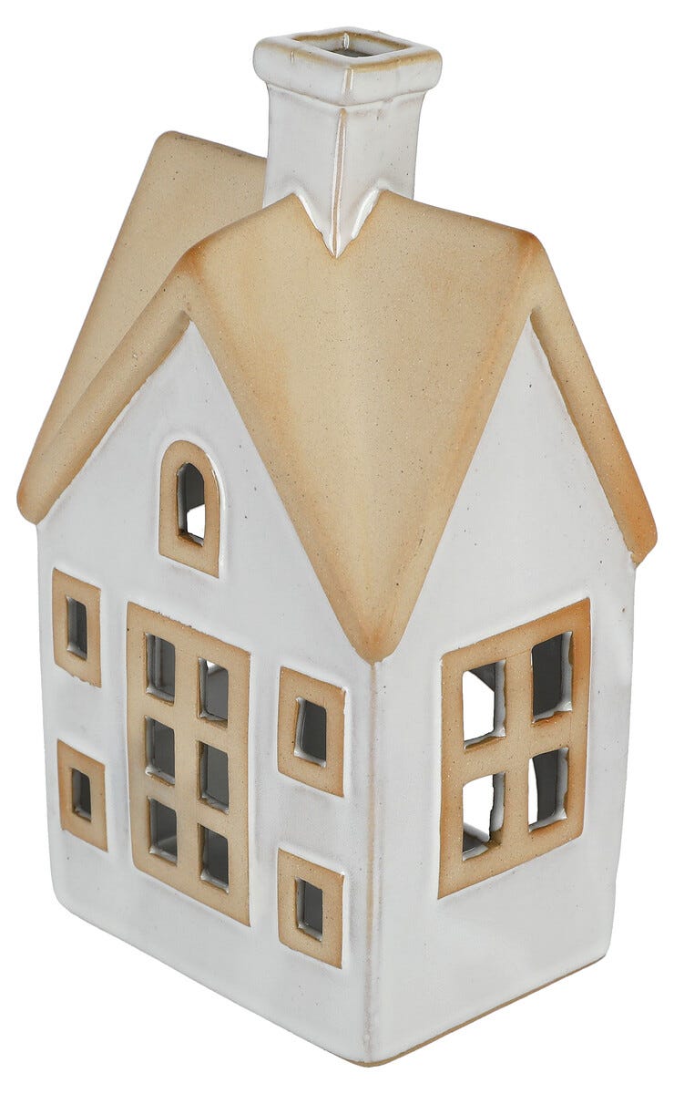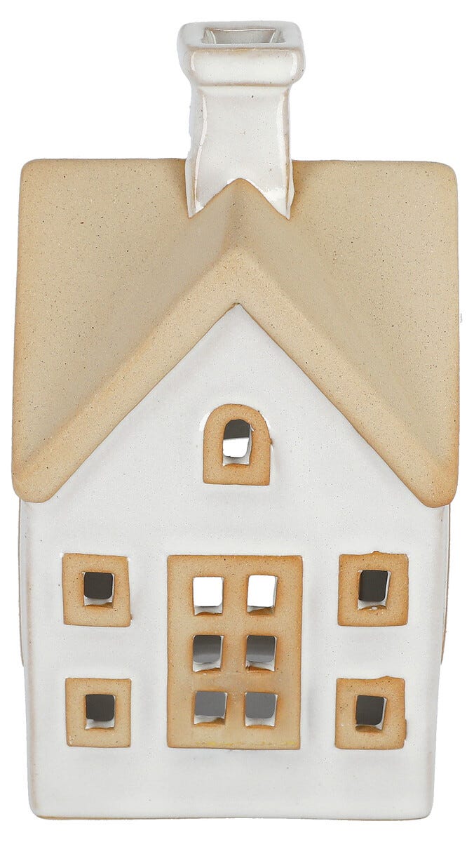 Lyshus i keramikk for telys, hvitt