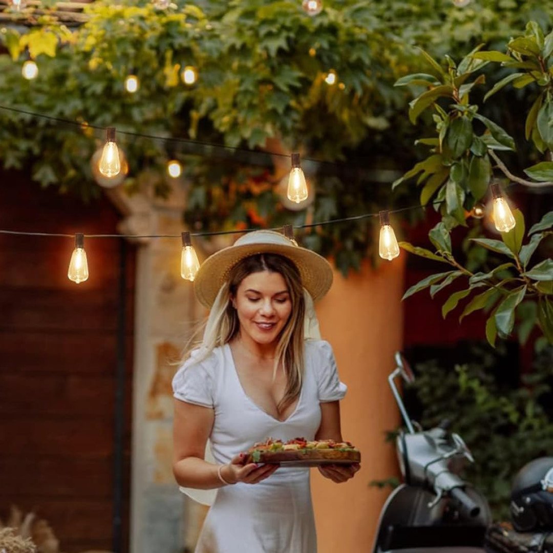 HomeLine utendørs LED-lyslenke med solcelle og USB-C, varm hvit