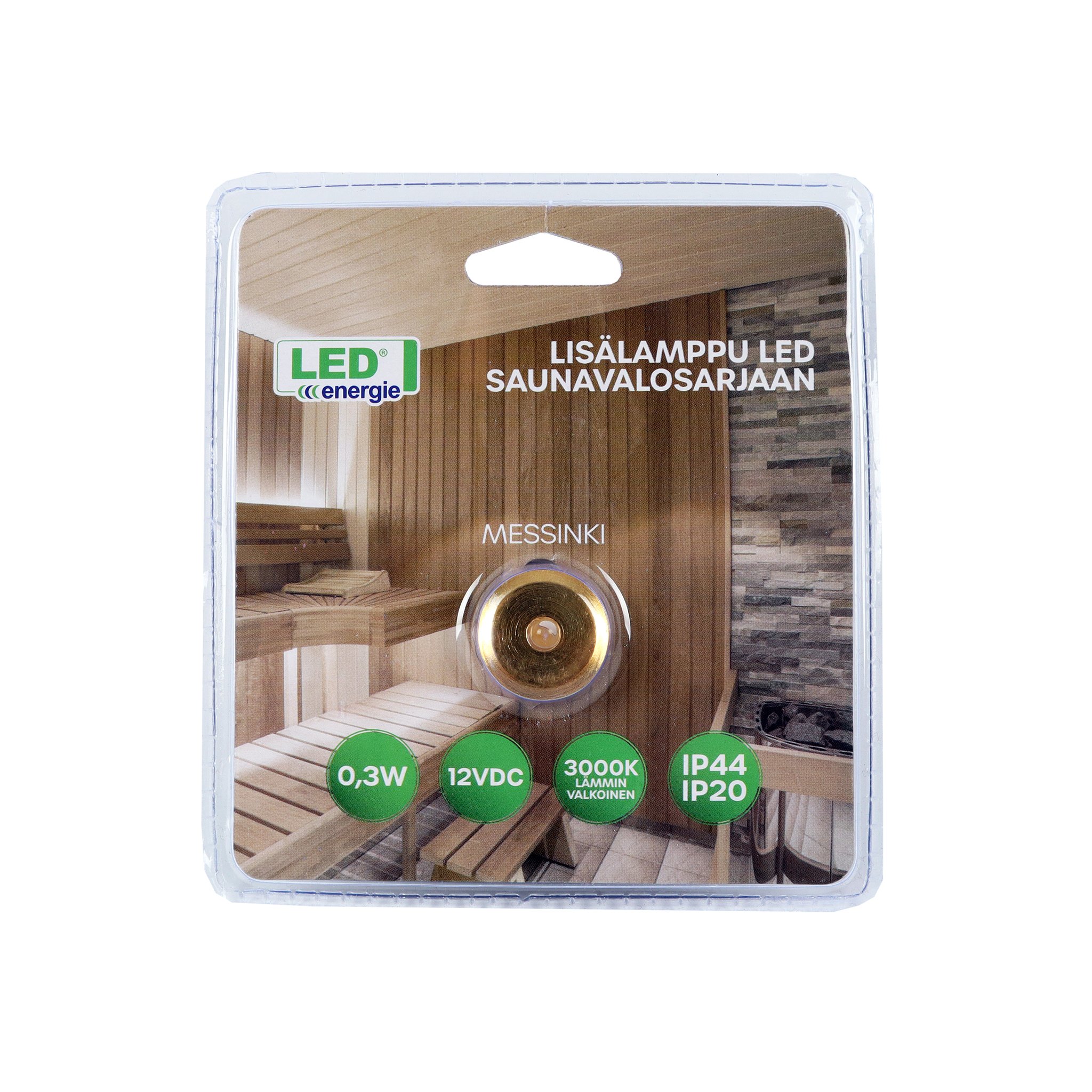 Ekstra Pære Led Energie - Innfelt Badstue-lyssett, 1 stk, Messing