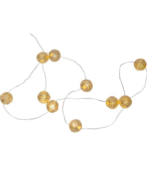 Lysslynge Duggdråpe, Varmhvit LED (x10), for batteri, med timer, Gull