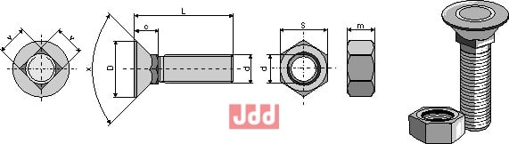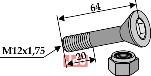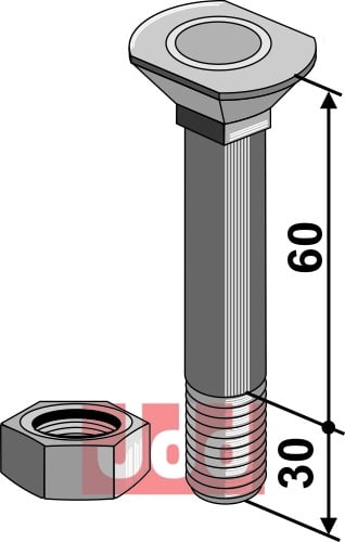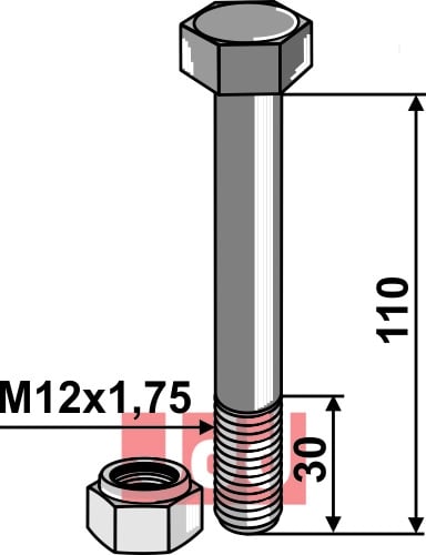 Plough bolt M12 med mutter M12x1,75x110, 10.9 kvalitet